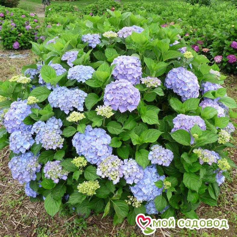 Гортензия крупнолистовая — красивый декоративный кустарник с прямостоячими побегами. Листья простые, яйцевидные, ярко-зеленые. Цветки крупные, шаровидные, до 20—25 см в диаметре, образуются на концах побегов. Цветет в июле-августе. В зависимости от кислотности почв можно менять окраску цветков. Растет быстро, теплолюбива, требовательна к почве и влаге, не переносит извести. Мирится с небольшим затенением, маломорозостойка (до -18 град). Требует укрытия на зиму. Йола — кустарник среднего размера высотой 100-150 см, с крупными фиолетовыми соцветиями. Цветет в июле — августе. Местоположение: солнце, полутень.
